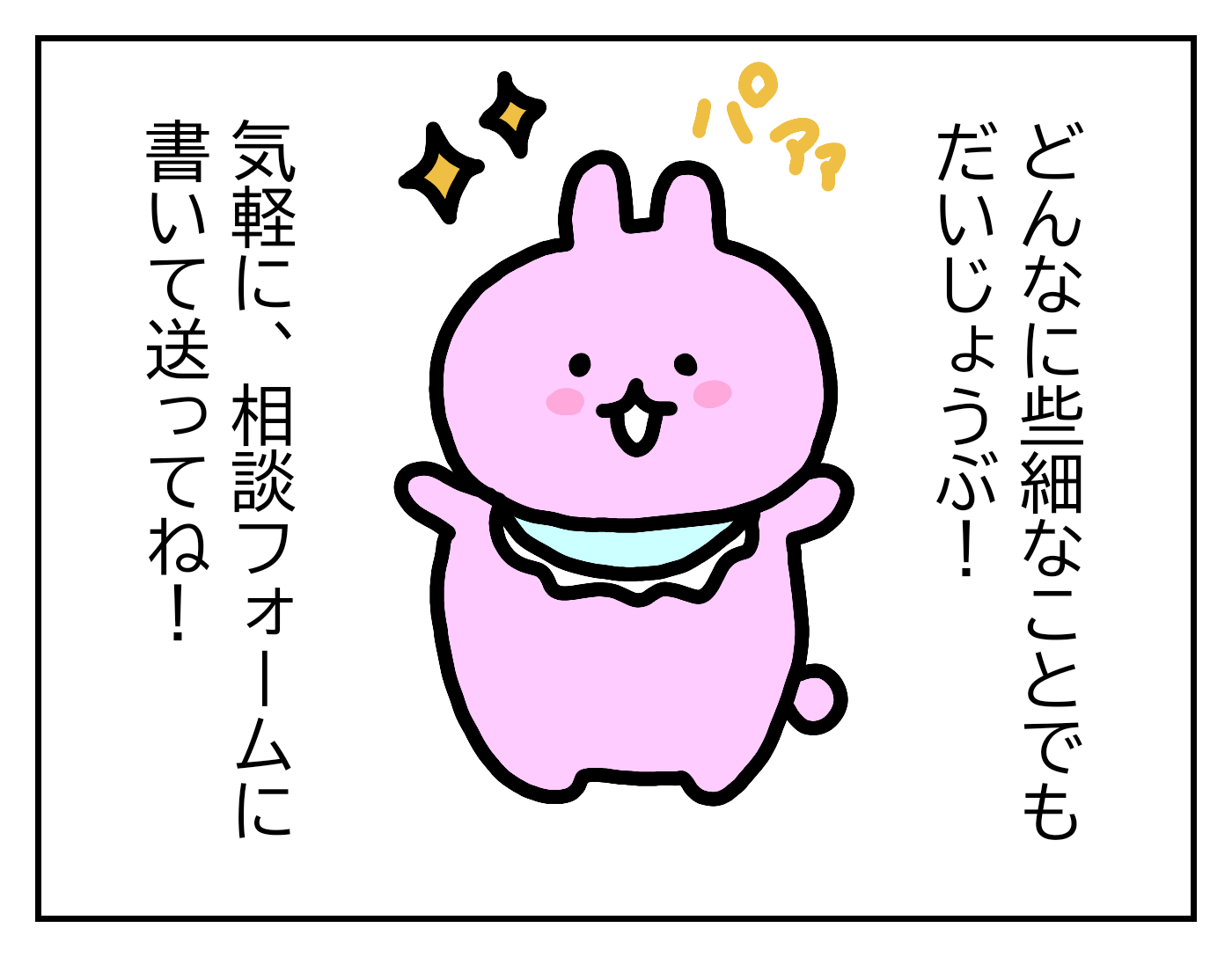 ・うさちゃんに相談したいお悩みがある方は、下記のフォームよりご投稿ください。いつでも募集しています。